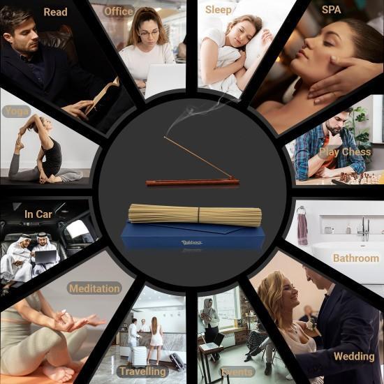 Incense sticks - Perfect for Everyday use, Mosque, Wedding Events, Aromatherapy, Spa, Reiki, Meditation, Healing, Yoga, Sensual Therapy, Positivity, Relaxation, etc. Our oud incenses give you a feeling of compassion, well-being, inner peace, relaxation, centeredness, increased vitality, and embodiment of oneself to raise your vibrations. Also, be given as a gift to your family and friends.