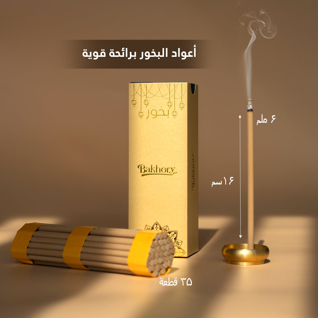 35pcs-Bakhory Cambodian Oud Incense Sticks 6mm 16cm (100g) FREE Incense Copper Burner
