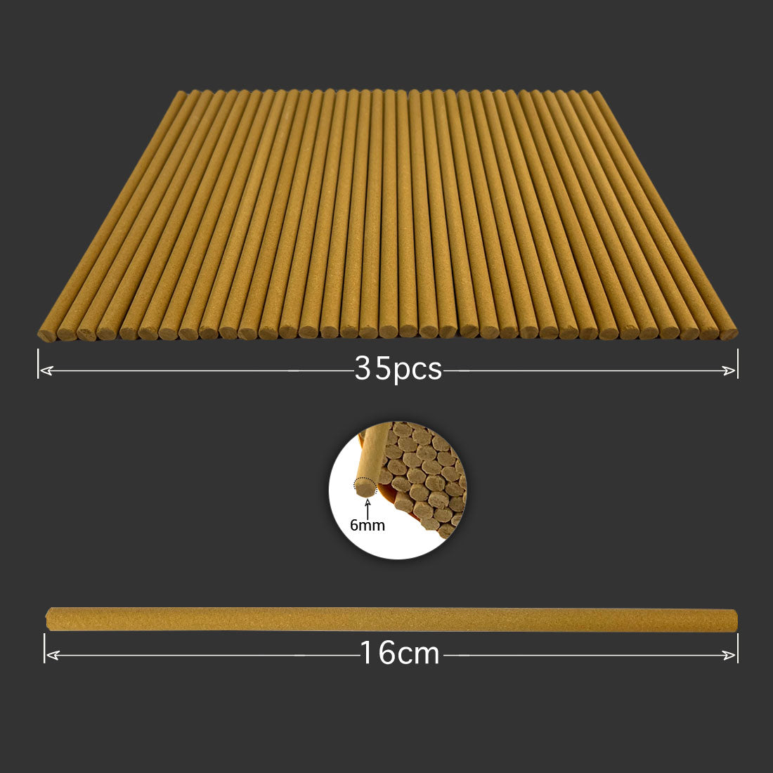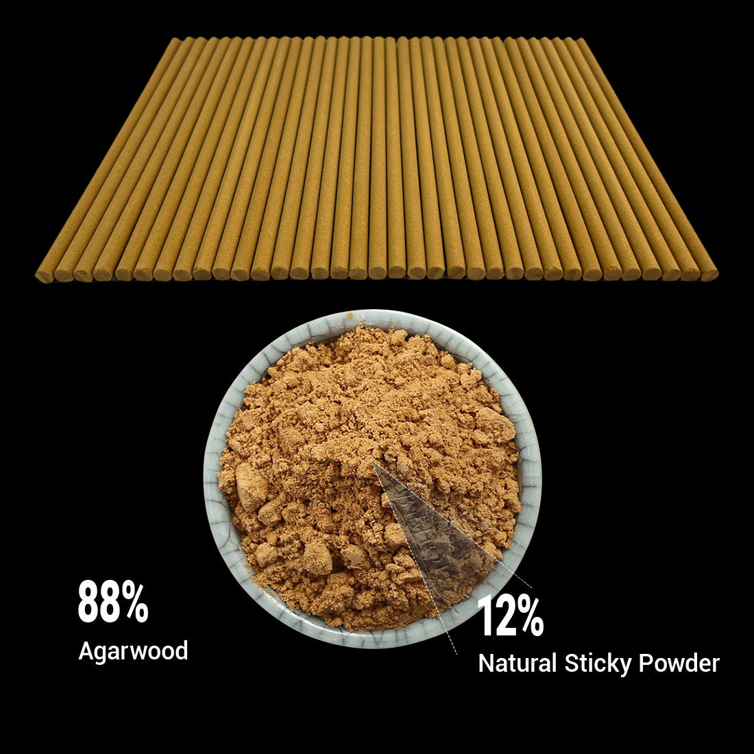 أعواد بخور طبيعية عالية الجودة مصنوعة من خشب العود الكمبودي المختار بعناية فائقة ومسحوق لزج طبيعي نقي. بعد انتهاء العرض، يتميز العطر بعبيره الحلو والناعم والمرطب. لا نضيف أي عطور زهرية أو فاكهية أو حمضية أو فانيليا. لا نستخدم أي مواد كيميائية سامة.