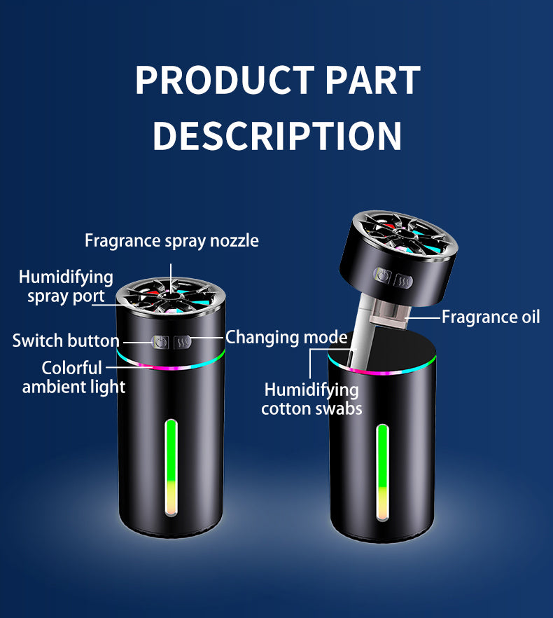 Wireless Air Diffuse Car Humidifier Ultrasonic Humidifier Aroma Diffuser Air Purifier Sanitizer Spray 300ML Night Light Air Humidifier With Essential Oil Purifier Diffuser Aroma Fog Mist.